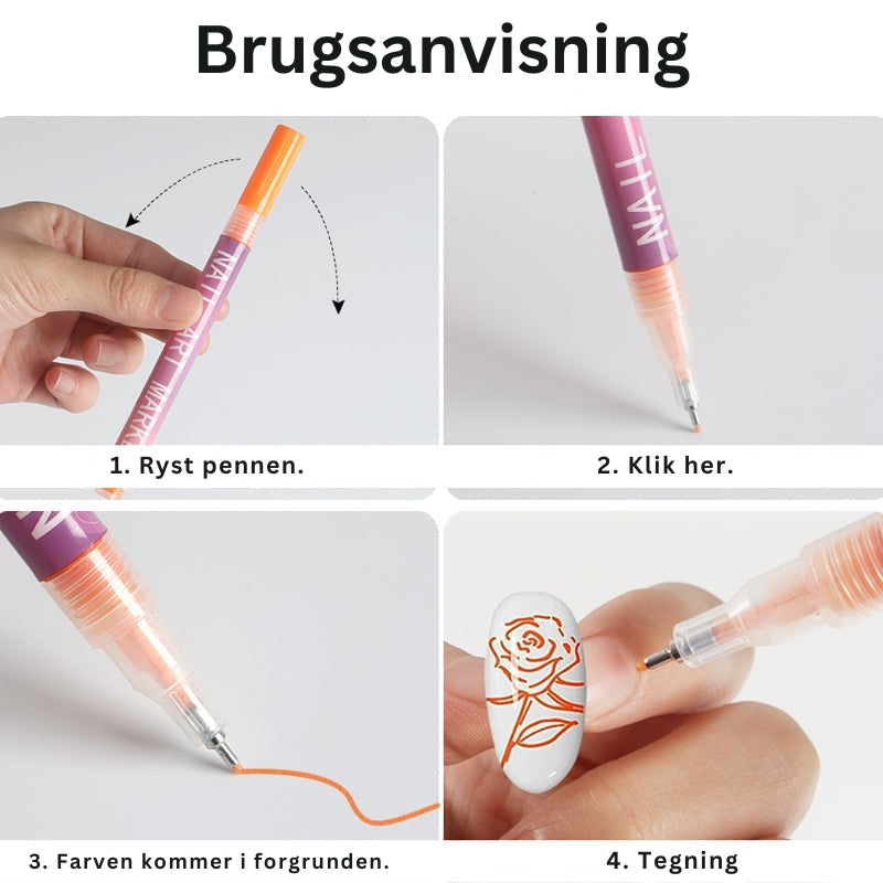 Præcisionsdesign med fin spids: Hver pen er udstyret med en 0,5 mm fin spids for absolut kontrol og nøjagtighed. Du kan tegne rene linjer, små prikker eller detaljerede kunstværker med selvtillid og lethed. Selv hvis du er ny inden for neglekunst, gør den fine spids det nemt at skabe professionelle designs.